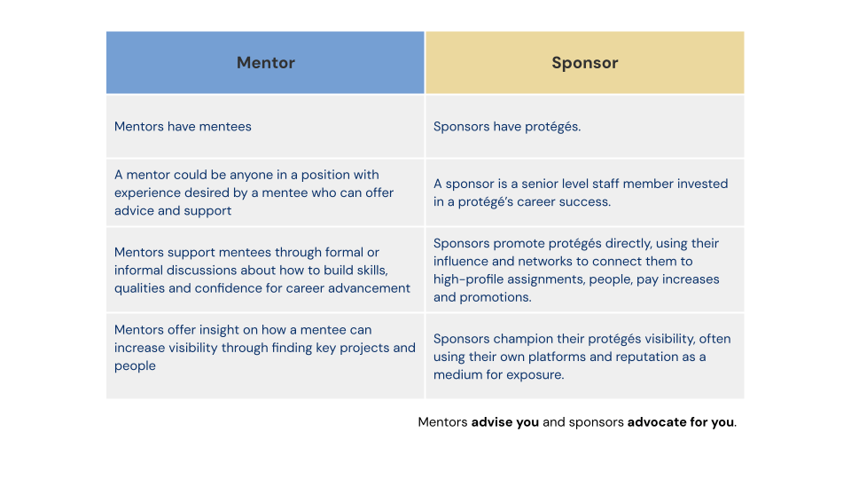 The perfect trio for your career growth: have at least one mentor, one sponsor, and one coach.